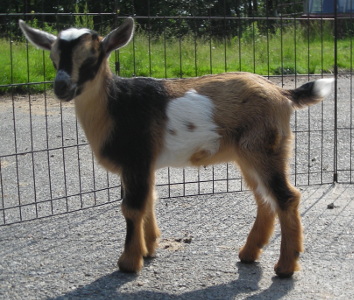 Dragonfly Jack Sparrow x Fairlea Freya: Twin does. Born 5/24/25. Pictures at 2 1/2 weeks old.   T24 doe, black and white T24 doe, buckskin and white